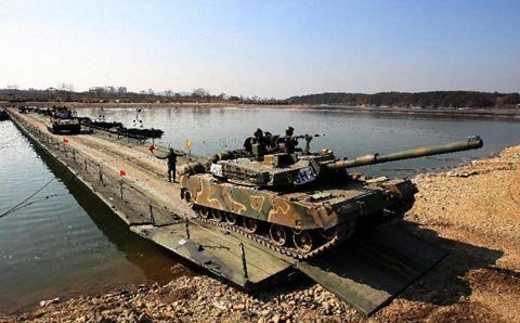 Xe tăng của Hàn Quốc tham gia cuộc diễn tập quân sự hàng năm ở Yeoju, tỉnh Gyeonggi hôm 2/11. (Ảnh: THX)