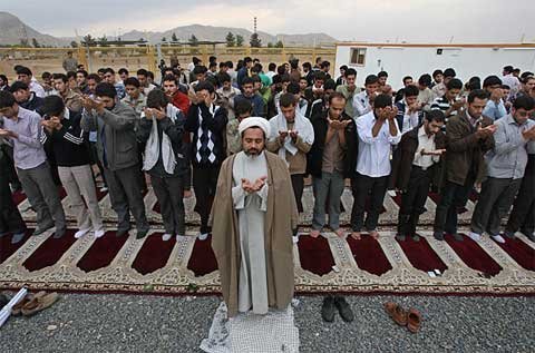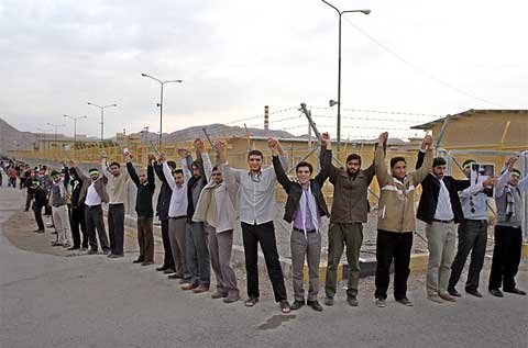 Một nhóm sinh viên Iran cầu nguyện trước nhà máy Isfahan.
