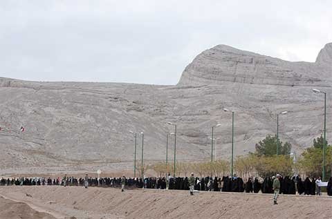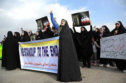 Các sinh viên hô vang các khẩu hiệu trong cuộc tuần hành quanh cơ sở chuyển đổi uranium Isfahan nhằm bày tỏ sự ủng hộ với chương trình hạt nhân của Iran.