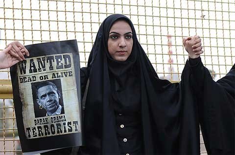 Một sinh viên Iran mang theo biểu ngữ trong cuộc tuần hành tại Isfahan.