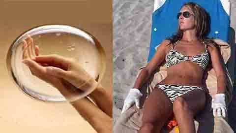 Gemma luôn phải nâng niu đôi tay của mình, ngay cả khi đi tắm nắng.