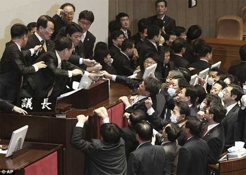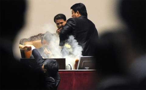 Các nghị sĩ Đài Loan đã nổi tiếng là nhà vô địch không ai đánh bại được khi đề cập tới các vụ giao chiến dữ dội tại Quốc hội vào năm 2007 và 2009. Tuy nhiên, diễn biến mới ở Quốc hội Hàn Quốc đã thiết lập một cấp độ mới và có thể đưa Hàn Quốc lên vị trí số 1.