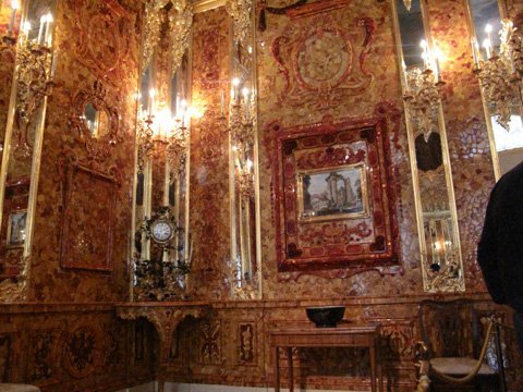 Căn phòng hổ phách là một kiến trúc tuyệt đẹp, nặng 16 tấn, và từng được mệnh danh là kỳ quan thứ 8 của thế giới, được trang trí hoàn toàn bằng những bức tường hổ phách, gương và đá quý.
