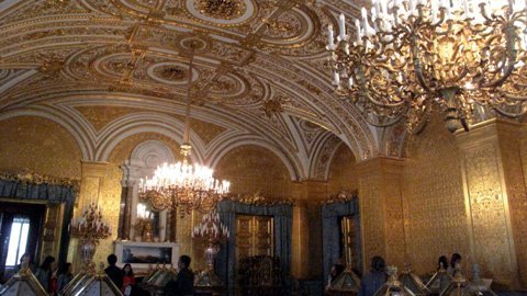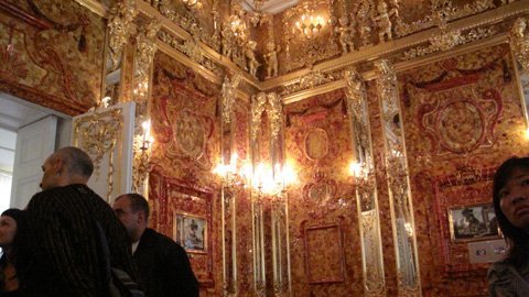 | Căn phòng hổ phách được phục chế lại sau chiến tranh. Quá trình phục hồi này kéo dài hơn 30 năm. Ảnh Thu Lượng |