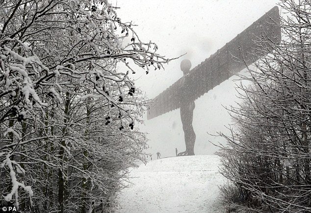 10. Tuyết phủ trắng bức tượng Angel tại Anh (Ảnh:PA)