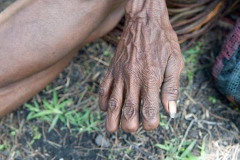 Cứ mỗi người thân qua đời, người trong bộ tộc Dani tới từ Papua, Indonesia đều phải cắt một đốt tay của mình để thể hiện lòng thương tiếc.