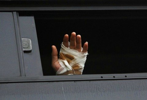 Bàn tay bị thương của một nạn nhân được cứu thoát trong vụ chìm tàu ở Java, Indonesia. (Ảnh: Reuters)