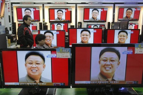Hình ảnh nhà lãnh đạo Kim Jong Il được chiếu trên màn hình TV. (Ảnh: AP)