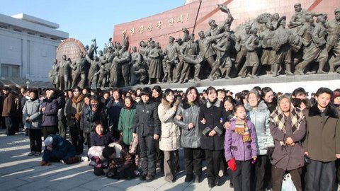 | Người dân Bình Nhưỡng tiếc thương nhà lãnh đạo Kim Jong-il vừa qua đời hôm 17/12. (Ảnh: THX) |