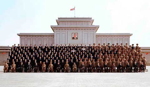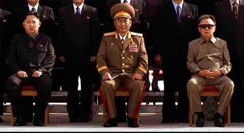 Ngày 30/9/2010, thông tấn xã Triều Tiên công bố ảnh của Kim Jong Un (trái), con trai út và là người kế nhiệm tương lai của ông Kim Jong Il.