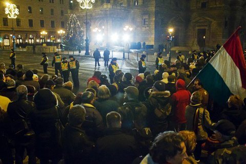 | Hôm 2/1, hàng chục nghìn người đã tập trung tại thủ đô Budapest của Hungary để phản đối bản hiến pháp mới. (Ảnh: THX) |