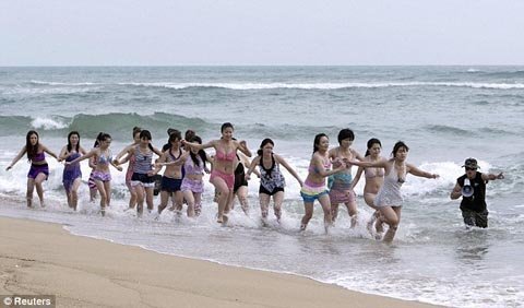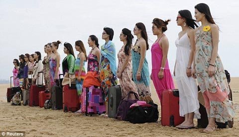 Trong những bộ bikini gợi cảm, hơn 20 cô gái trên bãi biển Hải Nam, Trung Quốc khiến nhiều người làm tưởng họ tới đây để vui chơi hay tham gia cuộc thi sắc đẹp nào đó.