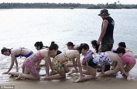 Dưới đây là một số hình ảnh về buổi tập luyện trên biển của các nữ vệ sỹ tương lai: