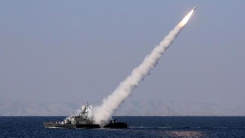 | Iran thử tên lửa trong khuôn khổ cuộc tập trận ở eo biển Hormuz. (Ảnh: THX) |