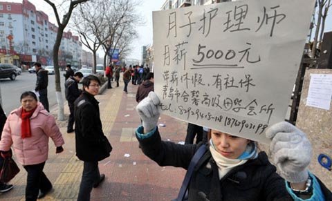 Thù lao dành cho các hộ lý trong tháng cao bị đẩy lên cao bởi sự cạnh tranh khốc liệt giữa các trung tâm môi giới dịch vụ giúp việc trong bối cảnh nhu cầu về người chăm sóc trẻ em tăng nhanh.
