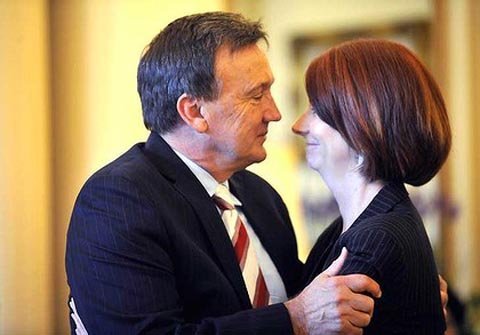 Thủ tướng Australia Julia Gillard và bạn trai Tim Mathieson nhìn nhau âu yếm. (Ảnh: Reuters)