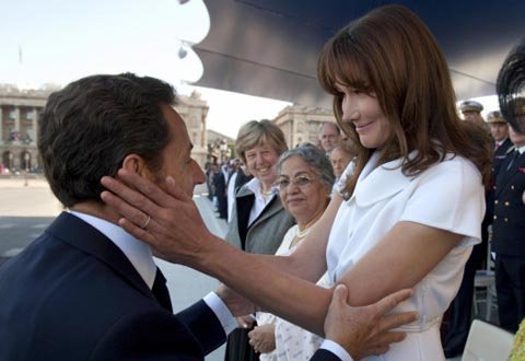 Cử chỉ ân cần không khó bắt gặp của vợ chồng tổng thống Pháp Nicolas Sarkozy và Carla Bruni. (Ảnh: Getty Images)