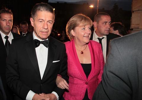 Thủ tướng Đức Angela Merkel rạng rỡ khi sánh vai bên chồng-ông Joachim Sauer. (Ảnh: Getty Images)