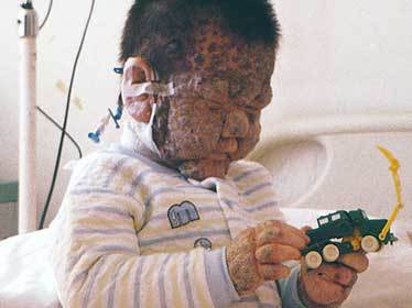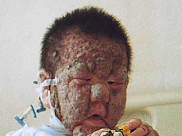 Cậu bé Li Shenghan, 4 tuổi ở Thẩm Dương, tỉnh Liêu Ninh, đông bắc Trung Quốc bị một căn bệnh lạ thường khiến khắp người cậu nổi lên nhiều mụn nhỏ. Trông cậu bé giống như một rặng san hô.