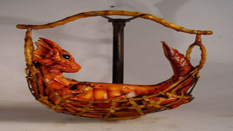 Một túi xách tay nghệ thuật với hình ảnh chú rồng nhỏ đang nằm trong một cái võng. (Nguồn: Oddee)