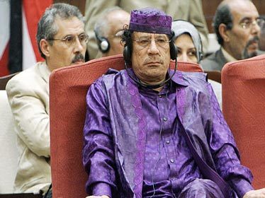 | Ông Gaddafi xuất hiện với đôi mắt sưng, da nhăn nheo (Ảnh: Styleite) |
