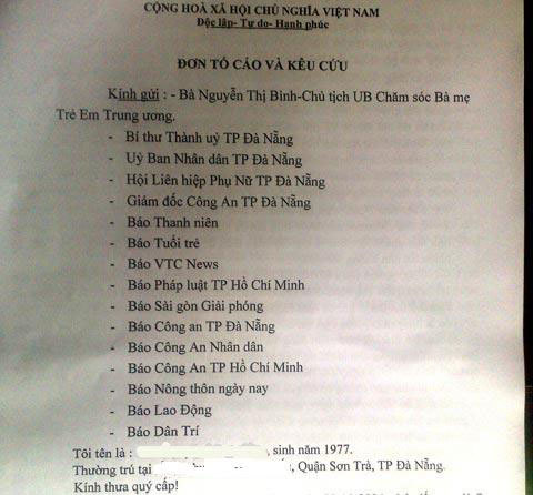 Trước đó vào ngày 28/3, chị H. đã gửi đơn tố cáo và kêu cứu đến các cơ quan chức