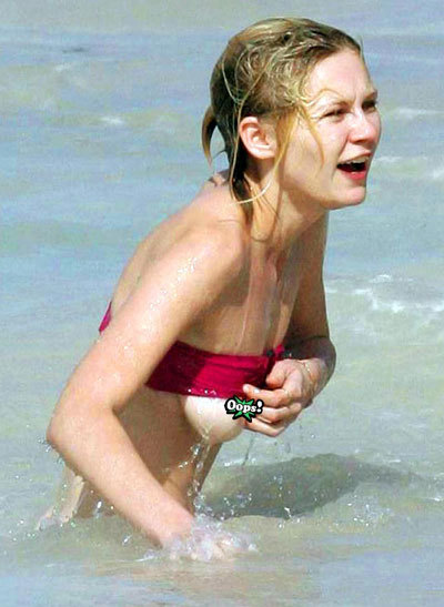 | Lần sau có lẽ Kirsten Dunst nên chọn áo tắm liền thân |