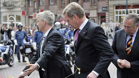 Trong chuyến thăm thành phố Wiesbaden, Tổng thống Đức Christian Wulff đã bị một kẻ tấn công ném trứng sống vào người.