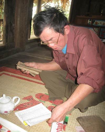Ông Hoàng Tiến Đồng, là người lưu giữ nhiều cuốn sách quý về cách làm duyên, hay còn gọi là “bùa yêu”.