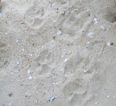 chân con mãnh thú để lại trên cát khiến các ngành chức năng đặt ra nhiều giả