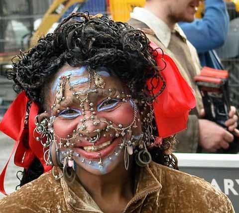 Người phụ nữ này có lẽ không thể rửa mặt...bởi quá nhiều vòng và khuyên |