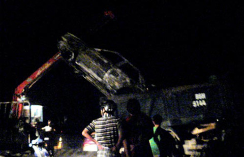 Chiếc xe gây án đã bị nhóm cướp đốt cháy nhằm phi tang, đánh lạc hướng (Ảnh: Người lao động) |