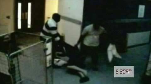 | Thi thể bệnh nhân Thomson bị kéo lê trên sàn bệnh viện |