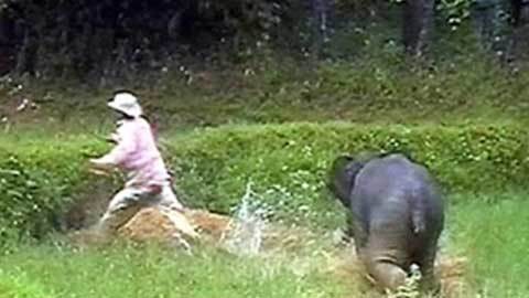 Một con voi hung hãn tấn công người (Ảnh: VietNamNet)
