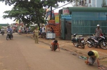 Sự việc xảy ra vào chiều 9/6, nhiều người đi đường đã phải ngỡ ngàng khi chứng kiến cảnh Đỗ Văn C. (học sinh lớp 10, Trường THPT Gia Nghĩa, thị xã Gia Nghĩa - Đắk Nông) và em ruột là Đỗ Văn T. (học sinh lớp 8, Trường Nguyễn Tất Thành, thị xã Gia Nghĩa) bò lê gần 1 km trên đường Hai Bà Trưng, thị xã Gia Nghĩa.