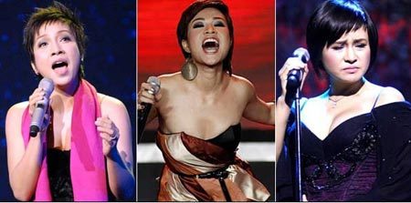 Uyên Linh (giữa) được gọi là tiểu diva bên cạnh những nữ ca sĩ gạo cội như Mỹ Linh và Thanh Lam