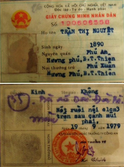 CMND cụ Nguyệt do CA Bình-Trị-Thiên cũ cấp |