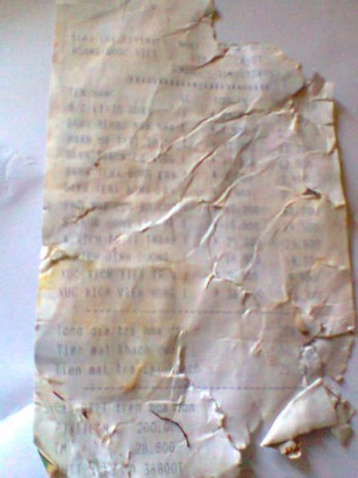 | Hóa đơn mua hàng, trước đó, bác Oanh theo thói quen đã vứt vào sọt rác. |