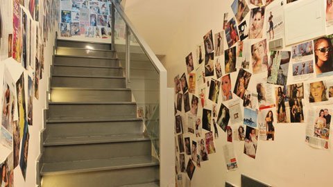 | Lối lên cầu thang được trang trí toàn bằng ảnh của chủ nhân (Ảnh: Afamily ) |