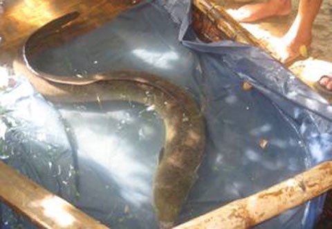 | Hiện đã có người trả 5 triệu đồng cho con chạch sú này nhưng gia đình vẫn chưa bán (Nguồn: Laodong.com) |