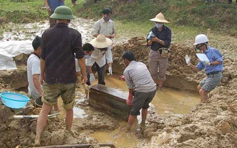 | Khai quật mộ xác ướp thời Hậu Lê tại khu công nghiệp Bảo Minh (Vụ Bản, Nam Định) (Nguồn: Công an Nhân dân) |