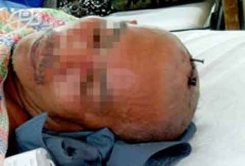 | Ông V tự đóng đinh vào đầu mình (Ảnh: Cần Thơ Online) |
