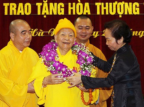 | Hòa Thượng Thích Thanh Tứ trong lễ đón nhận Huân chương Hồ Chí Minh hồi tháng 10 |