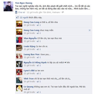 Trước phản ứng của dư luận, Dương Yến Ngọc phải vội vã lên tiếng xin lỗi công chúng thông qua trang mạng cá nhân: "Tai nạn nghề nghiệp nữa rồi, ánh đèn flash đã giết chết mình... Xin lỗi tất cả các bạn, những fan hâm mộ, xin tất cả đừng đào sâu vào nó nữa... Mình buồn lắm".