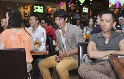 | "Bắt" Tăng Bảo Quyên lên sân khấu ca hát sôi động. Huy Khánh còn yêu cầu Hải Yến, Mai Phương, Hòa Hiệp phát biểu cảm tưởng về ca khúc vừa được nghe |