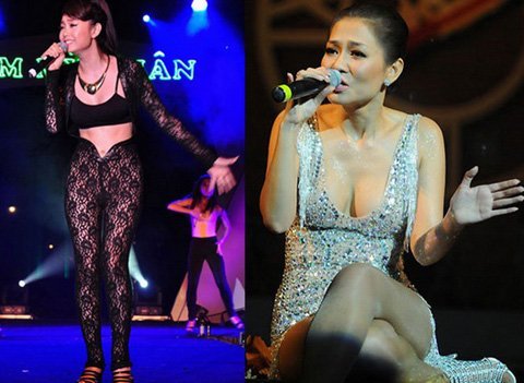 | Ca sĩ Minh Hằng và Thu Minh cũng từng dính mác ăn mặc phản cảm trên sân khấu |