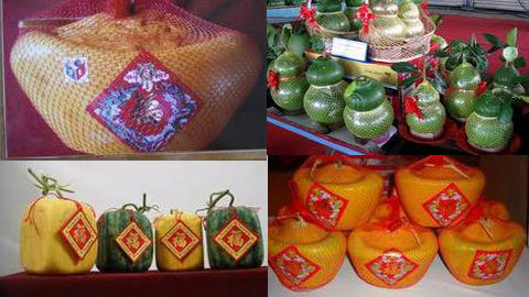 Bên cạnh đó, những loại hoa quả có mẫu mã, hình dáng "độc" cũng ngày càng được săn lùng để trưng bày dịp Tết. Nhiều loại quả như dưa hấu, bưởi Diễn hay cam Canh luôn là lựa chọn hàng đầu của người dân sành mua. Với những hình dáng độc đáo như tròn, bầu, dài, vuông hay hình thỏi vàng khiến dưa hấu trở nên đắt giá trên thị trường.