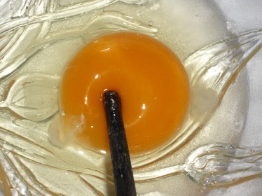 Loại trứng này dùng đũa ấn mạnh vào lòng đỏ không bung ra, ở trên đầu xoắn lại như màng nilon (Nguồn: Eva)