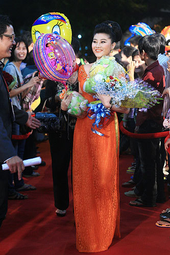 Mặc cho cơn mưa bất chợt đổ xuống ngay trước thềm đêm trao giải, các giai nhân Việt vẫn rộn ràng váy áo trước một rừng ống kính.