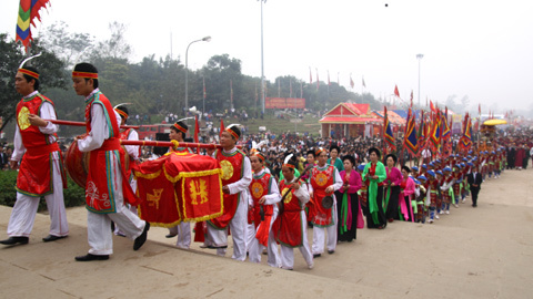 Kiệu rước lễ vật lên Đền Thượng